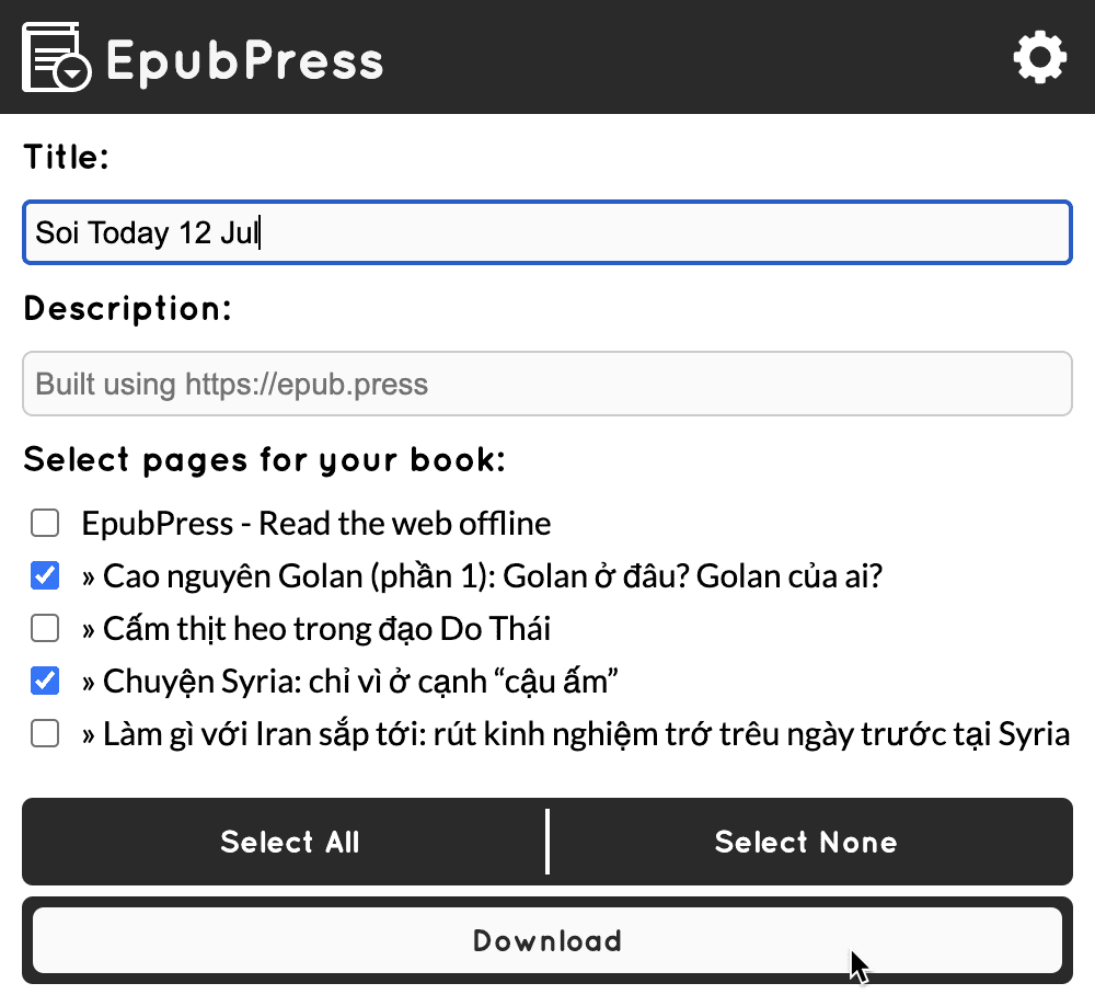 Mình phát hiện ra có extension có thể đưa nhiều nội dung website thành ebook và gửi thẳng vào Kindle (chỉ những dòng máy có hỗ trợ nhận ebook bằng email) đó là Epub.press