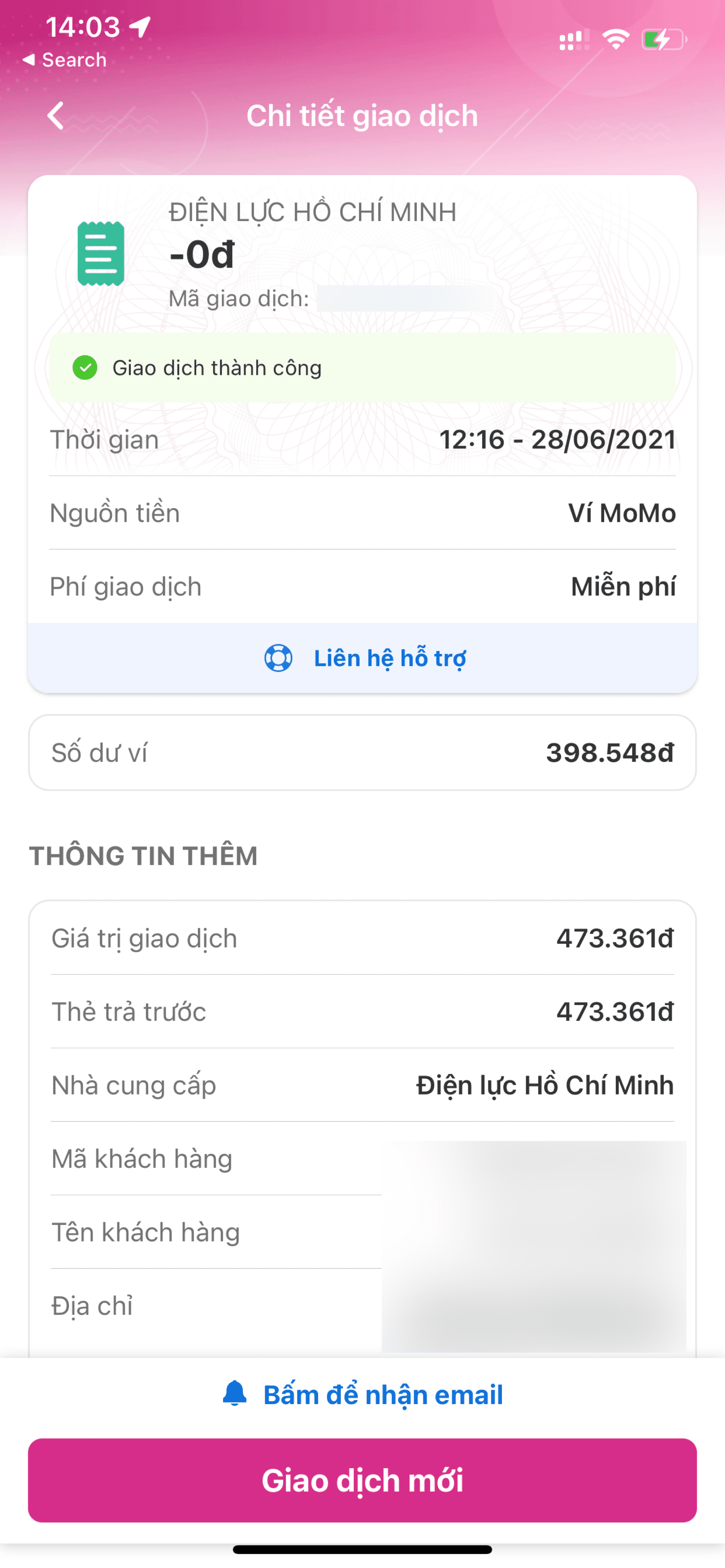 Hình bên dưới là mình trả tiền điện trên Momo dùng giftcard, số tiền phải trả bằng 0.